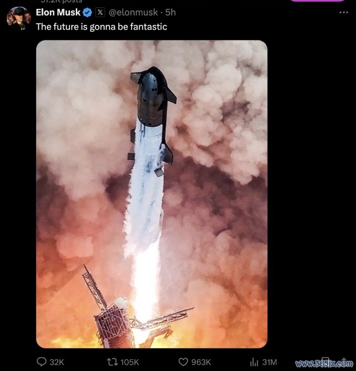竞选的最后关头,马斯克连续发文称,“今夜美国人民将赋予特朗普改革的权利”,他还表示,“未来将非常美好”,并配了一张火箭发射的照片。